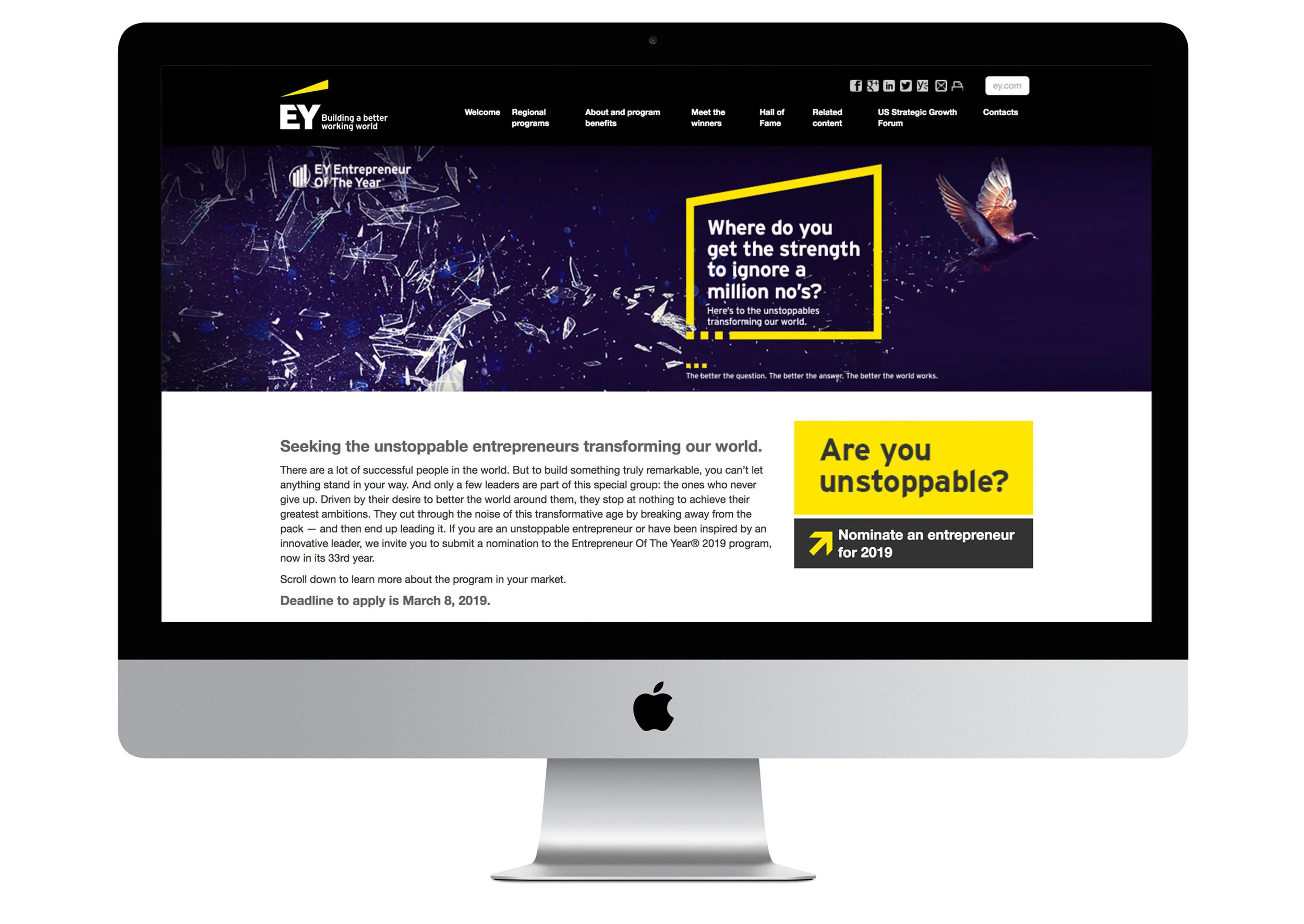 Working with the team at Brandpie, I helped develop a conceptual 360 campaign for EY and the EY Entrepreneur Of The Year® program. You can learn more about the program here.